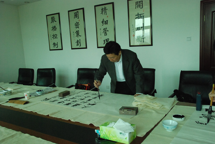 为弘扬传统文化,丰富员工业余生活,5月6日上午,新利在线注册有限公司举办了首届书画艺术学习交流活动。本次活动邀请了中国书法家协会会员孟云飞博士、中国书法家协会理事张铜彦先生、中国书法家协会编辑出版委员会副主任王荣生教授、人民艺术家协会理事于瑛先生等国内知名书画大师,各位书画大师在活动现场进行了艺术创作表演,挥毫泼墨,交流技艺,为新利在线注册有限公司留下了数十副墨宝,还对部分员工的书画作品进行了悉心指导。公司员工现场欣赏了书画大师的艺术创作,并聆听了有关书画艺术鉴赏知识的介绍,部分员工还在活动现场进行创作,听取书画大师的讲解示范和点评。