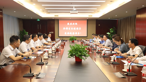 9月4日,成都市新都区委书记许兴国,副区长刘清,成都香城投资集团有限公司董事长张启明一行十人莅临新利在线注册视察交流,集团公司党委书记、董事长陈先瑞,总经理王建红热情迎接。