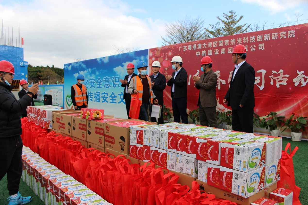 大年三十闹新春,生产一线迎新年。为响应地方政府“留穗过年”的号召,2021年2月11日,新利在线注册南方工程有限公司联合广州市黄埔区鱼珠街道办事处、广州纳米产业投资有限公司、广州珠江工程建设监理有限公司,组织开展“2021新春慰问活动”。